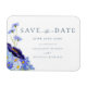Cartão moderno de "save the date" para casamento de flores silvestres em aquarela para um casamento boêmio floral de verão. Arte única de flores silvestres pintadas à mão em aquarela e bela tipografia em script que é fácil de personalizar com os nomes da noiva e do noivo e a data do casamento. Flores únicas de prado, incluindo centáureas, papoulas, cosmos e não-me-esqueças com folhagem delicada pintadas pela artista Catherine Sweetman em tons de azul centáurea, azul-bege, azul-marinho, roxo e verde. Ideal para o jardim botânico ou casamento ao ar livre na primavera ou no verão em um prado de jardim. Encontre itens correspondentes na suíte de casamento moderna de flores silvestres azuis.