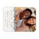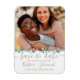 Esta imã salve a data de fotos do casamento apresenta um modelo moderno com sua foto no topo com uma borda de cor d'água pintada à mão, eucalipto verde, e seus detalhes de casamento começando com as palavras "Salvar a Data" em um roteiro de ouro escuro, escrito à mão, para personalizar. Os melhores votos para o seu noivado e casamento! Desenhada por Susan Coffey.