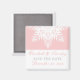 Ímã de salvar a data de casamento de inverno rosa floco de neve, branco, apresentando um floco de neve branco em fundo rosa suave. Uma escolha perfeita para casamentos de Natal de dezembro de classe. Alguns elementos cortesia de vectorportal.com. Este design de modelo de casamento moderno é completamente personalizável e pode ser personalizado e faz parte de um conjunto de casamento. Esquema de cores: Rosa, branco, cinza.