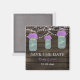 Rustic Barnwood, luzes de cordas balançando com flores roxas em um casamento de jarro de pedras salvam os ímãs de datas. Produtos correspondentes também disponíveis.