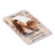 Um cartão de Imã salve a data moderno, na moda e romântico para um casamento. Creme, fundo colorido de pêssego, estrutura de arco, decorada com flores creme. Personalize e adicione sua foto, a data, os nomes