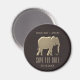 Na moda marrom tuxedo em combinação com elefante de ouro elegante, único e falso - símbolo de amor, fertilidade e boa sorte. Casamento moderno, simples e único salva o ímã da data, com nomes personalizados de noiva e noiva.