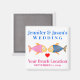 Você está tendo um casamento de destino tropical ou talvez vai se casar em um aquário? Este bonitinho imã de peixe fará um favor perfeito para os seus convidados, ou só pedir algumas lembranças para você e para a sua festa noiva! Personalize com os nomes, data e local de praia de sua escolha. A fonte e a cor do texto, bem como a cor de fundo do ímã, podem ser alteradas para ajustado da sua preferência.