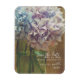 Um casamento salvou o ímã de datas com uma foto de hífens azuis e roxas em um jarro de pedreiro sobre um fundo de madeira de celeiro.