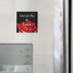 Rosa vermelha atrativa no imã de casamento preto personalizado com seus nomes e data.