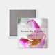 Magneta de casamento orquídea roxa e branca atrativa personalizada com seus nomes e data.