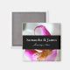 Magneta de casamento orquídea branca e roxa, atraente, personalizada com seus nomes e data.
