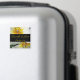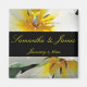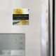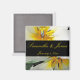 Um ímã de casamento personalizado atraente com lírios amarelos e brancos no fundo e uma faixa preta através do centro com seus nomes e data.