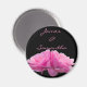 Atraente par de rosas cor-de-rosa para trás, ímã de casamento personalizado com seus nomes e data.