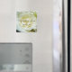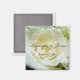 Magneta de casamento de rosa branca atrativa personalizada com seus nomes e data.