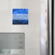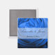 Feche atrativo um imã de rosa azul personalizado com seus nomes e data.