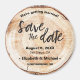 Personalize esses ímãs exclusivos do círculo Salvar a Data com sua data de casamento, localização, nomes e site de casamento. Ele apresenta um disco impresso de madeira cortada, perfeito para seu casamento rústico. Ser magnético permite que seus hóspedes a exibam durante todo o ano e com uma linha de site incluída permite que você os mantenha atualizados e conectados.