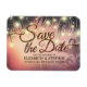 Casamento Salve os Modelos de Data Magnets - Luzes de Sequência de Casamento de Praia Elegante de Verão e Palmeiras. Um Design Perfeito Para O Seu Grande Dia! Todo Estilo De Texto, Cores, Tamanhos Podem Ser Modificados Para Ajustado Das Suas Necessidades.