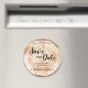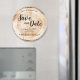 Personalize este casamento único Salve nossos ímãs do círculo de datas. Ele apresenta um disco de madeira cortada, perfeito para o seu casamento rústico. Peça aos seus hóspedes que cubram deste criativo para salvar a data do seu casamento temático.