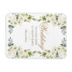 Bonito flores brancas com verde elegante escuro misturado com eucalipto. Este é um excelente "Save the Date" (Salvar a data) para o seu refrigerador.