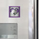 Feliz noiva e crânios de noiva se encaixam em um quadro de coração roxo e prateado com texto JUNTO PARA ETERNIDADE.