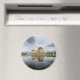 Imagem redonda com o histórico castelo de Eilean Donan numa manhã tranquila com reflexo na água tranquila da costa oeste da Escócia, perto de Isle of Skye.