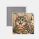 A magnet featuring a photo of a cat caricature.