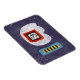 Uma ilustração engraçada sobre um fundo roxo e branco com listras amarelas e pretas em azul.