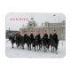 Uma bela vista da Cavalaria Doméstica em Londres num raro dia de neve impresso numa imã de geladeira de souvenir.