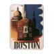 Ilustração antiga pôster de viagem Estados Unidos da América de Boston, Massachusetts com a Old State House (primeiro plano) e a New State House (fundo) que fica no topo de Beacon Hill, com vista para Boston Common. A Igreja do Norte é à direita, que é o local de onde partiu a famosa cavalgada da meia-noite de Paul Revere, seu sinal "Um se por terra e dois se por mar" avisando da invasão britânica.