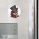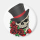 O crânio de cavalheiros está vestido com o seu melhor chapéu e arco vermelho com belas rosas vermelhas.