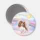 O rei rei Blenheim Cavalier Charles Spaniel tenta suas asas entre as nuvens desfocadas do céu antes que elas sejam livres para entrar na Ponte do Arco-íris onde anjos e amigos esperam.l