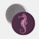 Ícone rosa estilizado de um cavalo marinho.