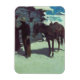 Magnet, com a pintura de óleo de Frederic Remington, The Belated Traveler (1906). Um cowboy bate em uma porta de cabine no meio de uma neve de inverno. Ele segura os reinos de um cavalo marrom ao seu lado. Um presente perfeito para amantes de cavalos e para o Velho Oeste.