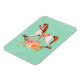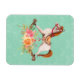 Íman flexível com uma imagem encantadora e fantástica de um cavalo de balanço antiquado, com um bonito buquê floral, cor-de-rosa e amarelo. O fundo é uma cor damasco verde-clara.