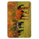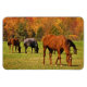 Este ímã flexível apresenta uma fotografia de arte de uma bela paisagem rural de outono com cavalos pastoreando a grama verde. Uma colina fica atrás delas em gloriosas cores de folhagem de vermelho, laranja, ouro, amarelo, marrom e verde.