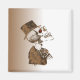 Dourado crânio de bronze vestindo um chapéu de cima. O crânio tem olhos vermelhos.
