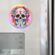 "Caveira Sangrenta" um trabalho de arte vibrante e cativante que combina a elegância dos motivos florais com o ousado simbolismo de um crânio de açúcar. Inspirada pelas tradições de Día de los Muertos, essa design apresenta um crânio intricadamente decorado cercado por um buquê vívido de flores coloridas. Coloque sobre um fundo de gradiente radiante.