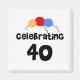 Três balões de cores primárias e texto preto que diz "Celebrando 40" em cartões de aniversário de 40 anos, T-shirts, canecas e muito mais.