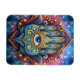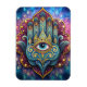 An artistic and detailed representation of the hand of Fatima, a powerful symbol of protection and good fortune, adorned with intricate designs and an all-seeing celestial eye.