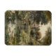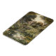 pintura em vintage de uma cena botânica de cisnes nadando na água em um jardim inglês com lírios, pontes e muitas flores exóticas