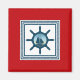 Design com temas náuticos, com decoração da cena da vela em quadrados com faixas em fundo vermelho