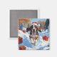 Imã Cena de Neve Festiva de Natal do Conhound Bluetick