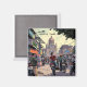 Imagem ai do estilo quadrinhos da área de centro de Kolkata, Índia, Motocicletas estacionadas e cartas. Um ímã com ilustração de movimentada rua de centro com edifícios, restaurantes, compras e pessoas nas suas motos.