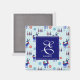 Um ímã com um padrão repetitivo. Ilustrado com um par de veados escandinavos vestindo lenços vermelhos. Com marcas decorativas em seus corpos. Além de um trio de árvores de natal vermelhas e azuis com uma estrela no topo. Flocos de neve rico espalhados. Um quadrado em camadas acima com seu nome e inicial do monograma personalizado.