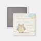 Modelo de imã salve o dia de Chá de fraldas, elegante, personalizado, com coruja de ilustração do vetor de desenho animado, fofa, moderna, contemporânea, simples, limpa, em cores castanho e bege, sentado num arame, segurando uma flor azul bonito. O fundo é bege / bronzeado e há folhas estilizadas de desenho animado no canto. O texto personalizável está em uma fonte de script escrita à mão cursiva. Na moda, capricho, clássico, chique, costume guardar as datas para Chás de fraldas de rapazes para a mãe ser. Diversão, divertida, esquisita, fofa, moda, imã salve o dia de corujas. Ímanes de cartoons doces e adoráveis, lindos, corujeiros, perfeitos para primavera, verão, outono/outono e chás de inverno. O texto é totalmente personalizável/personalizável para atender às suas necessidades. Tenho convites e outros produtos na minha loja. Se precisar de ajuda para personalizar seu produto, entre em contato comigo através da minha loja e eu ficarei feliz em ajudar. NOTA: todos os produtos do Zazzle têm imagens impressas em formato plano.