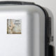 Chá de fraldas ou imã salve a data de aniversário com uma fotografia de querido de um urso de pelúcia fofo, em pé de uma parede russa de madeira/pano de fundo.