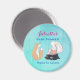 Um chá de fraldas adorável (ou outro evento) obrigado seu ímã. Um desenho animado e caprichoso com uma raposa e um coelho sentados juntos, pendurados. O coelho branco tem shorts coloridos de pêssego e está sentado em um tronco coberto de cogumelo. A raposa marrom está olhando para seu amigo de coelho de orelha longa. O fundo é uma textura azul turquesa com listras de pincel.
