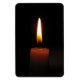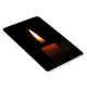 Acenda sua vida com este elegante ímã flexível. Apresenta uma fotografia simples e viva de uma vela castanha com uma chama adorável em tons de branco, amarelo, ouro e laranja. Está sobre um fundo negro puro.