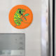 Este imã de geladeira personalizado tem um chamaleão de desenho animado fofo falando ao telefone. O lagarto tem listras verdes e amarelas e está sentado sobre um galho com folhas. Clique no botão personalizar para alterar a cor de fundo ou torná-la branca. Você também pode adicionar texto ou seu nome se quiser. Encontre outros designs de répteis e dinossauros no Lápis de Alina. Procure mais na seção de Animais.
