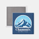 Este ímã com um logotipo do Chamonix Mont Blanc France apresenta uma montanha azul maravilhosa com fundo ensolarado. É a lembrança perfeita para turistas em férias de esqui!