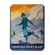 Poster vintage das primeiras Olimpiadas de inverno realizadas em Chamonix, França, em 1924, com o vizinho Mont Blanc a servir de local para os acontecimentos alpinos.
