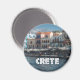 Chania Crete Ilhas Gregas celebra lembranças felizes desta incrível ilha. Foto do porto de Chania com hotéis e tavernas, junto com a palavra Creta em tipografia divertida.