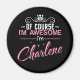 Charlene Claro que sou incrível, sou Charlene - em sans brancos e cor-de-rosa misturados e letras cursivas com bordos brancos e rolhas e cortou uma coroa branca. O nome é acentuado com estrelas brancas.