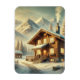 Cena de inverno inspirada nos Alpes, com um chalé confortável cercado por árvores cobertas de neve e montanhas majestosas. Perfeito para decoração rústica, arte sazonal e inspiração de feriado!